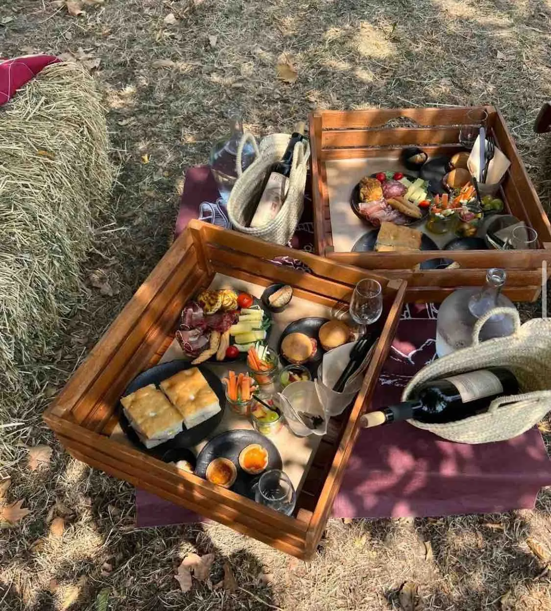 Riceverete il vostro cestino da picnic contenente una bottiglia di vino da tavola rosso, acqua e un delizioso menù stagionale composto da antipasto, piatto principale e dolce, preparati con alimenti sani a km 0 e abbinati all’olio EVO, alle marmellate, al miele e alla frutta dell’azienda.