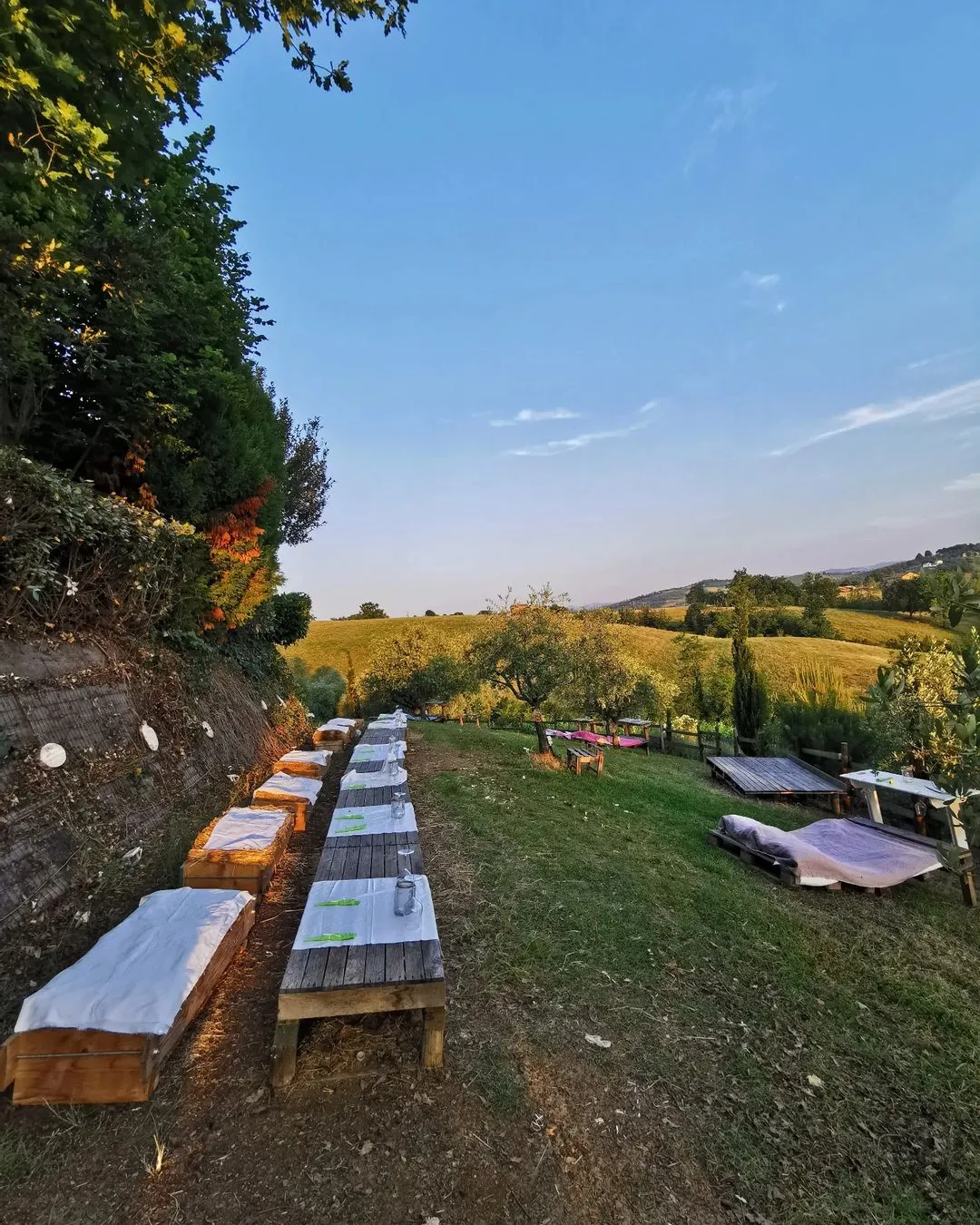 Bellissima esperienza di Pic nic tra gli ulivi con una vista spettacolare della madonna di Puianello e del castello di Levizzano, preceduto da un meraviglioso concerto strumentale al tramonto. Torneremo di sicu...altro