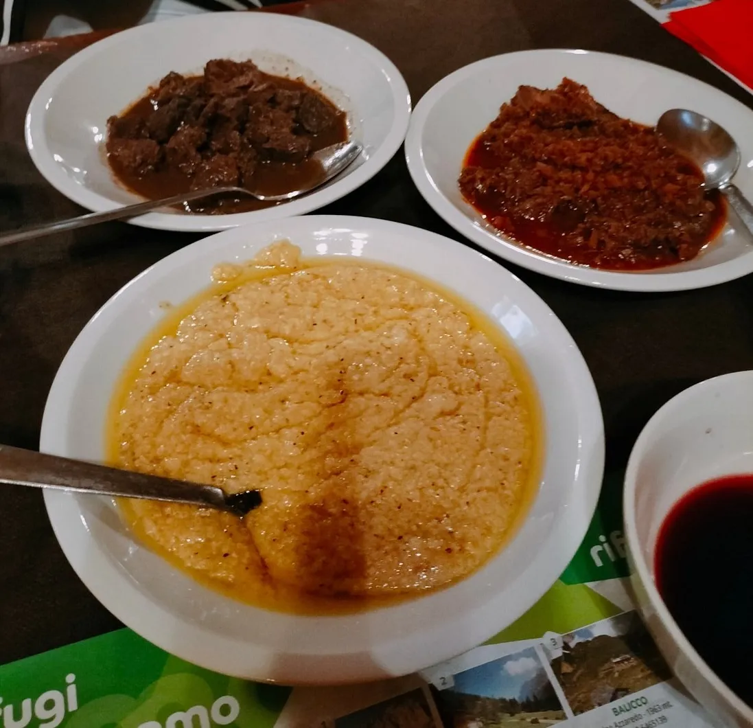 Nel weekend e a cena il rifugio offre un menù composto da antipasto con assaggio delle carni, bis di primi, polenta con carne e dolce.