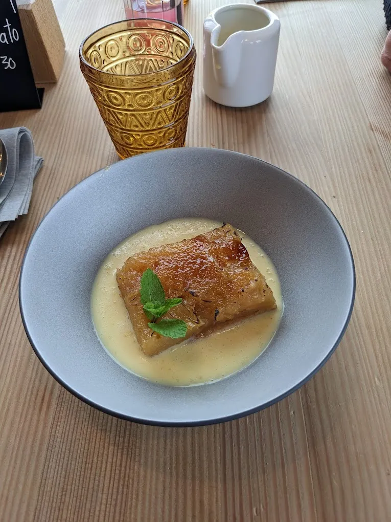 - Coppa di maiale con birra delle Dolomiti, purè alle senape e cavoletti, oppure, Blanc de blancs baccalà, crema di porri e patate con Chardonnay di montagna.