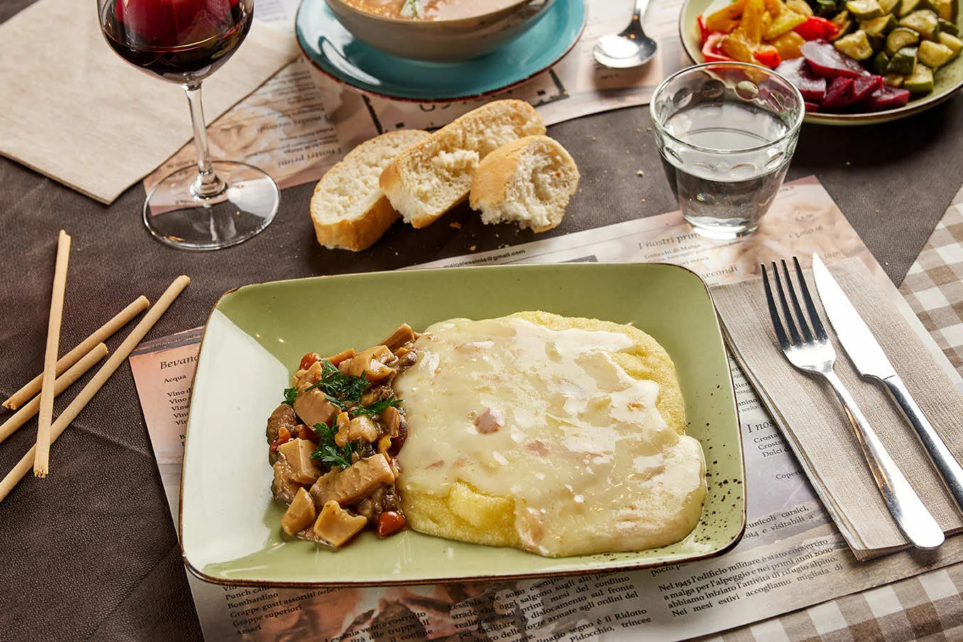 - Secondo a scelta tra: Polenta, soppressa, formaggio, funghi; Carne salà cotta con verdure; Formaggio fuso con funghi e polenta morbida; Fuori menù del giorno; Assortimento di verdure di stagione con formaggio monte veronese.