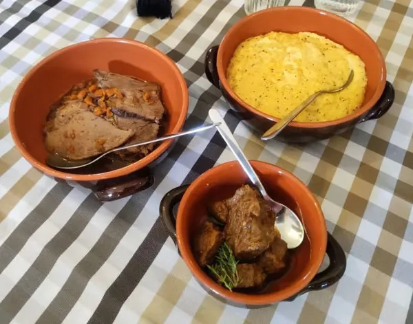Successivamente, due primi piatti preparati seguendo le ricette tradizionali della zona. Dalla polenta taragna alla pasta fresca con sugo di capriolo, ogni morso vi trasporterà direttamente nelle cucine bergamasche.