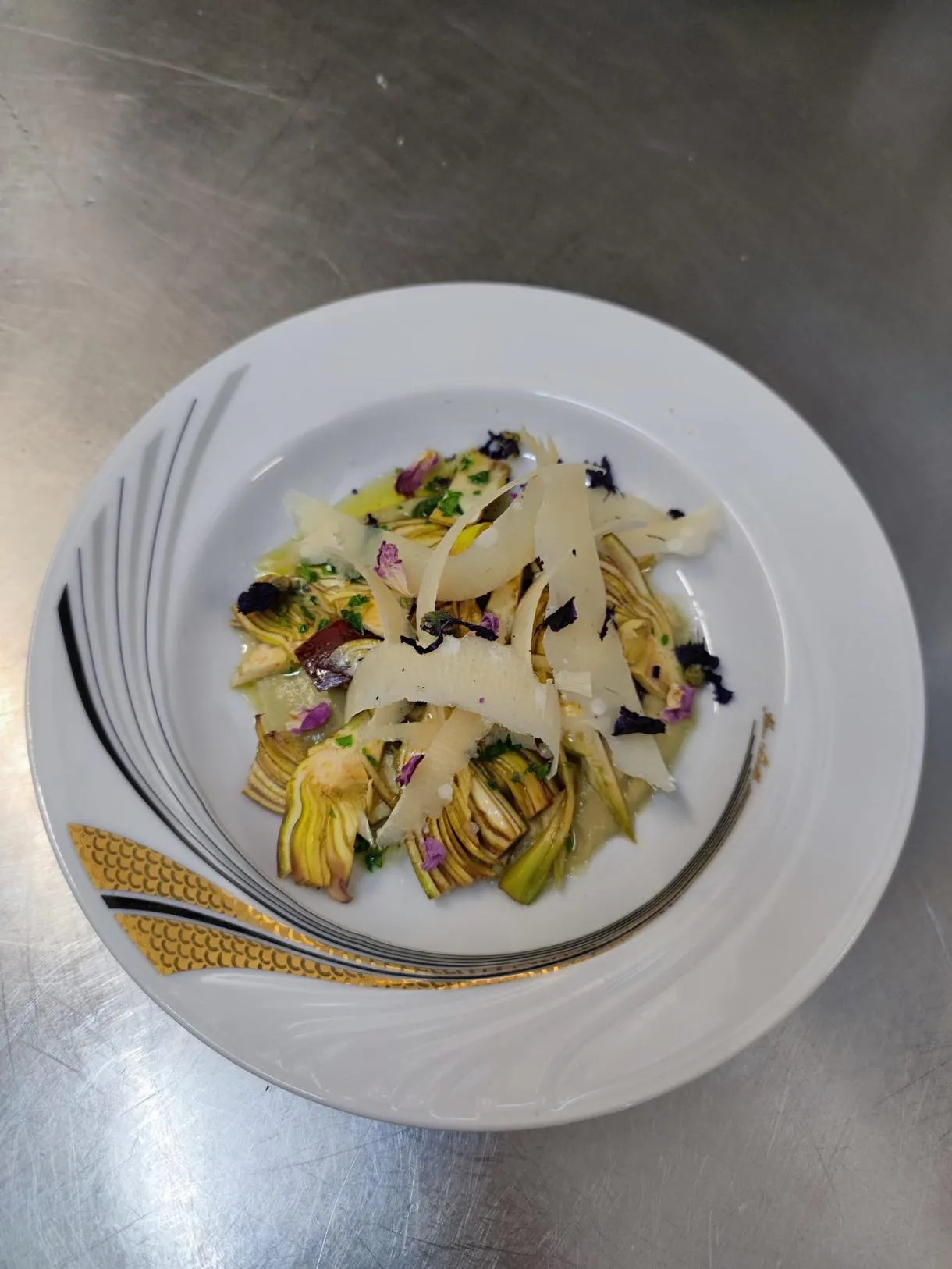 I piatti variano settimanalmente in base alla stagionalità e alla reperibilità delle materie prime, partendo dai raccolti dell’azienda agricola e dalle proposte dei coproduttori esterni.