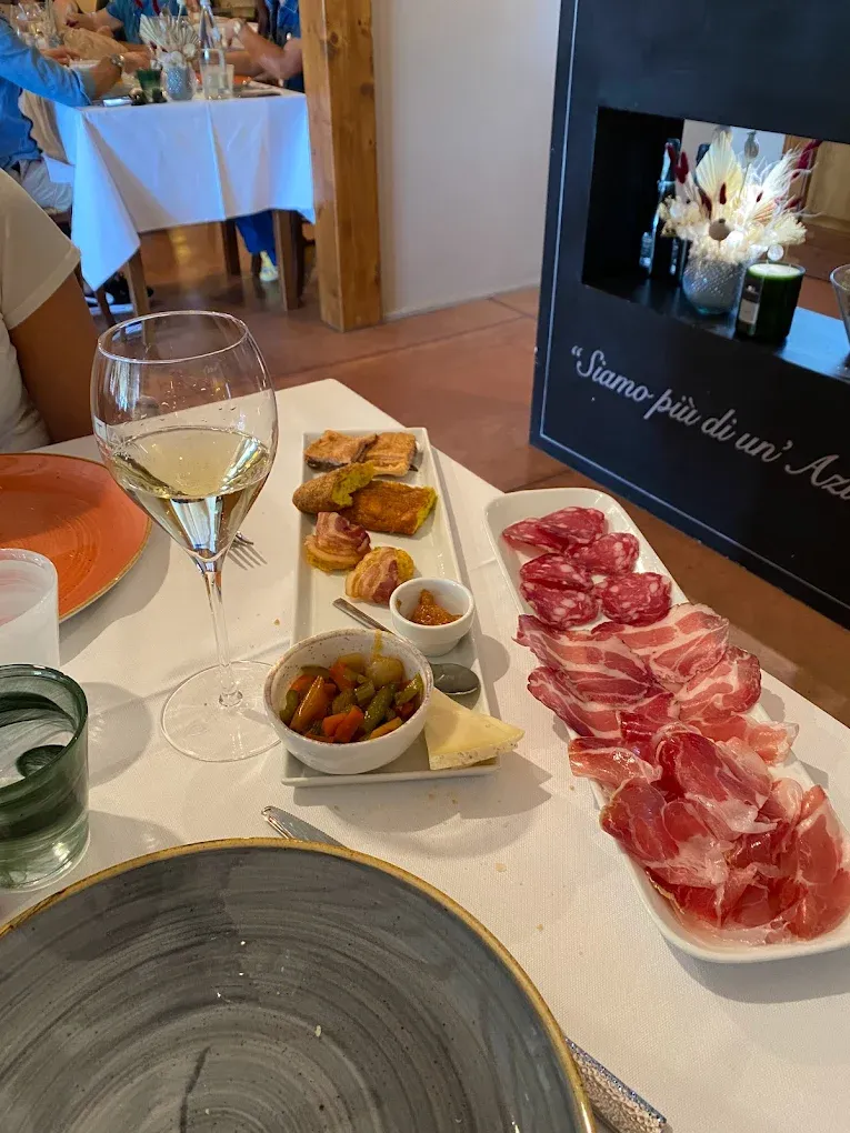 - Antipasti: Salumi tipici bresciani, torte salate al radicchio rosso e formaggi, formagella di malga con confetture fatte in casa, frittatina di zucchine, polentina con pancetta, verdurine in agrodolce