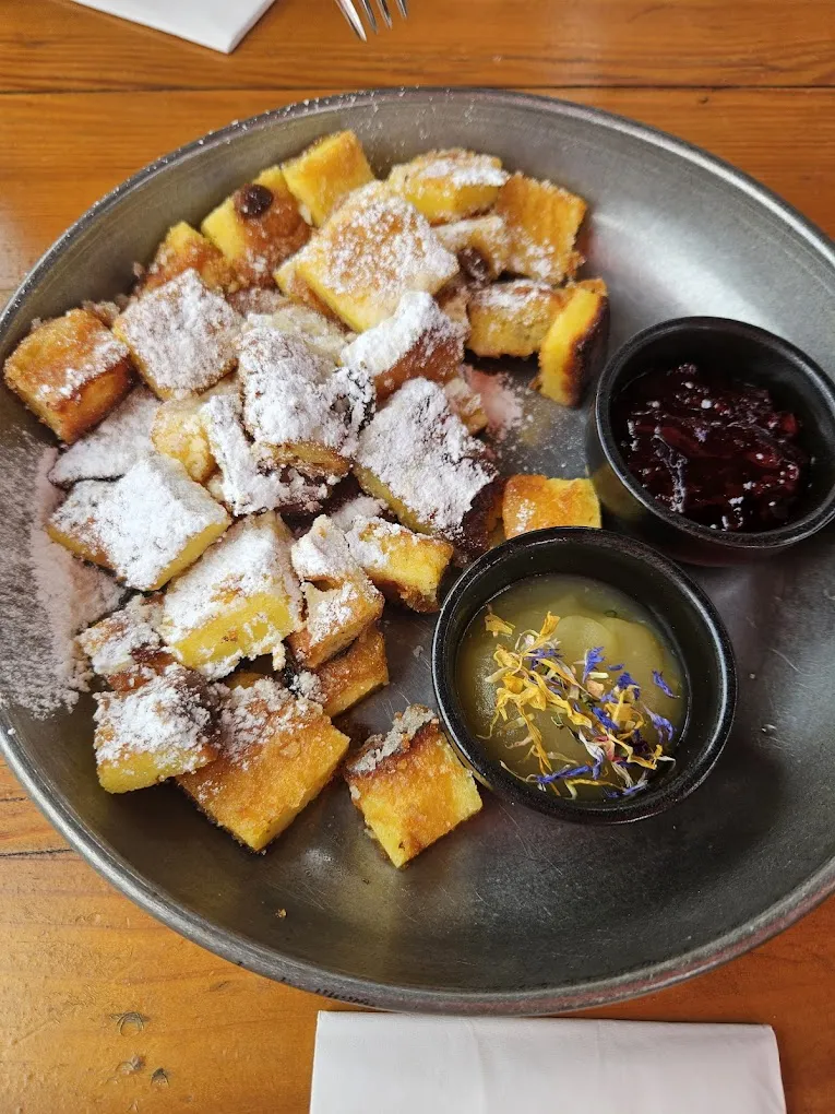 Tra i piatti che potrete assaggiare: tris di canederli, mezzelune fatte in casa ripiene di spinaci e ricotta, tagliatelle fatte in casa al ragù di cervo, kaiserschmarren con mirtilli rossi e mousse di mele, entrecôte di manzo alpino.
