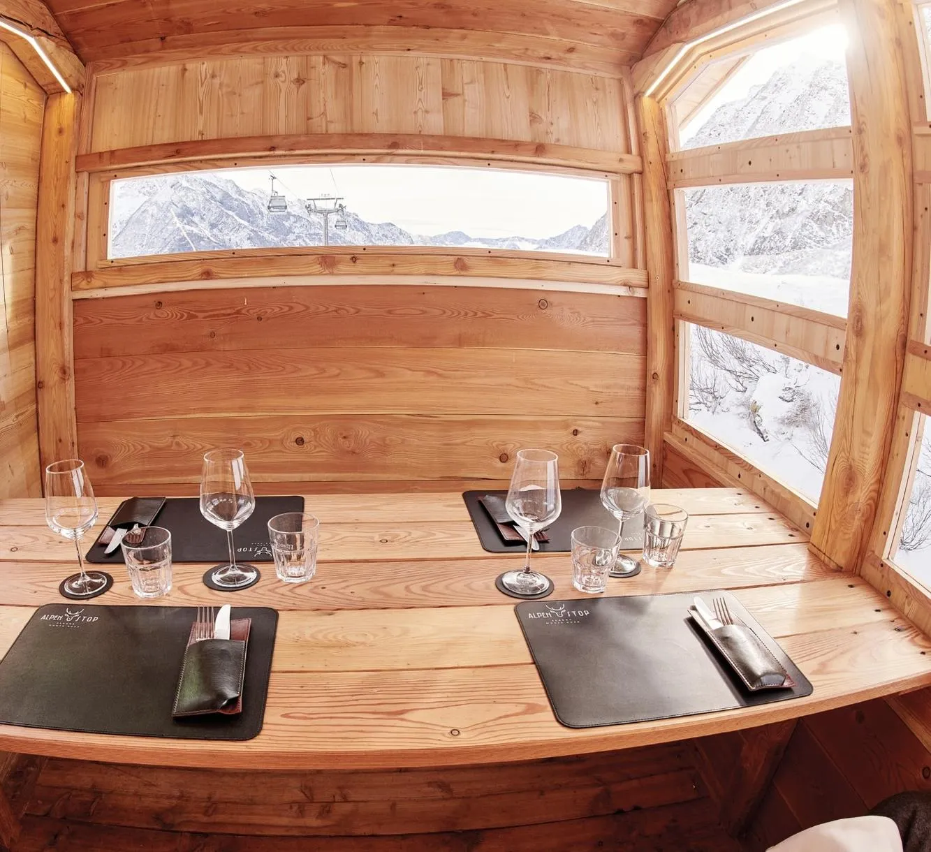 Per un pranzo più intimo è possibile prenotare una delle esclusive Kabin esterne solo per voi. Questi privé contengono massimo 6 persone. Il menù proposto è uguale a quello del pranzo nella sala principale.
