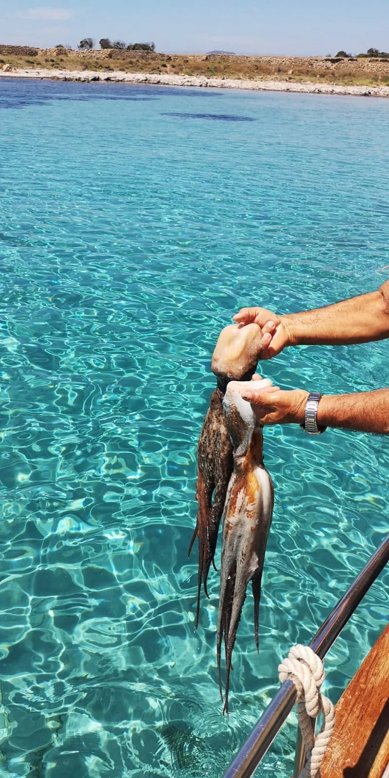 Salirete a bordo di un gozzo da pesca lungo 10 metri. Durante l'escursione sono previste soste bagno e il pranzo a bordo.