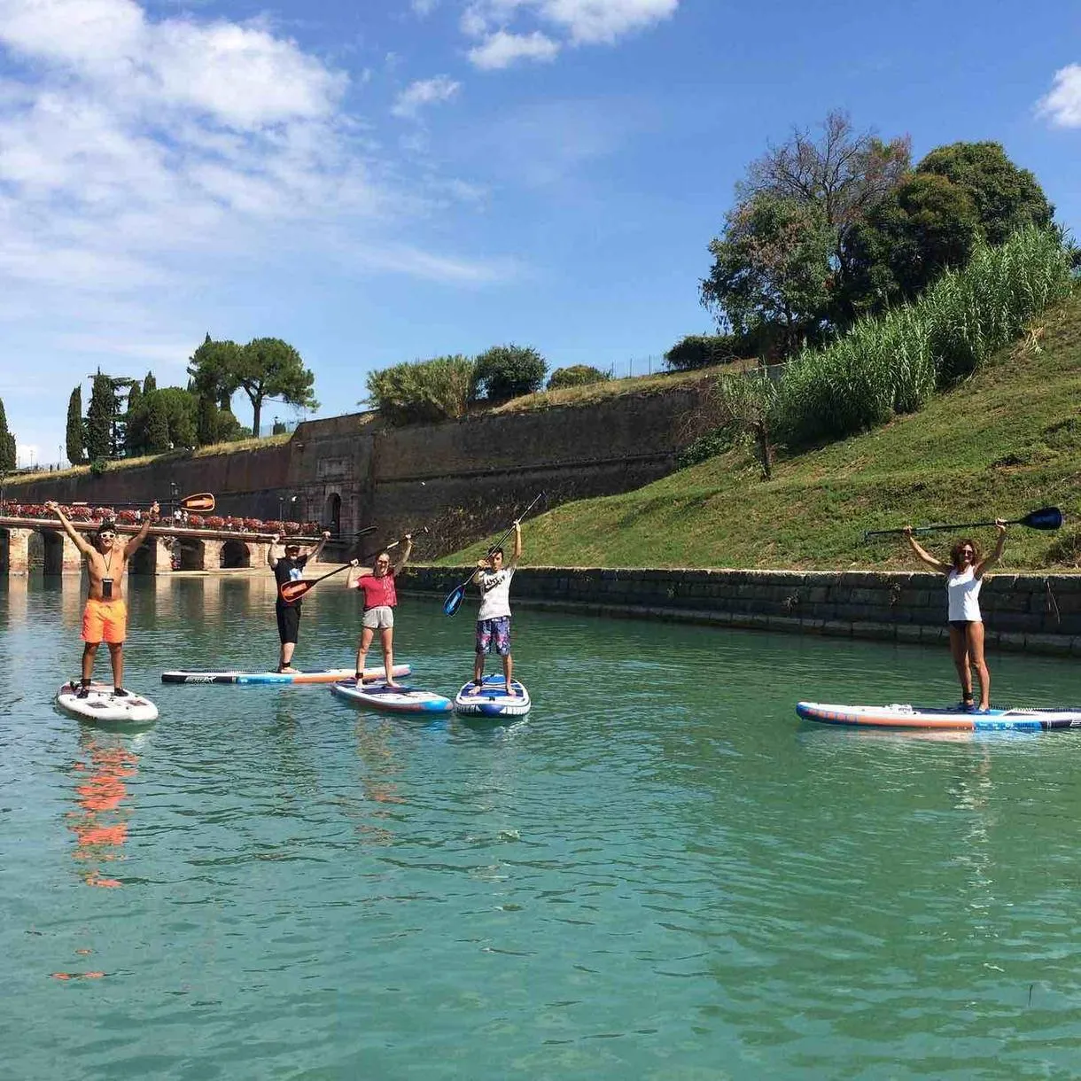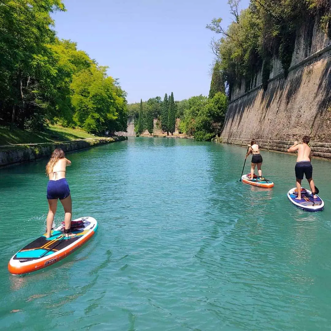 SUP tour delle mura di Peschiera del Garda, disponibile con guida per i principianti e senza guida per i più esperti.