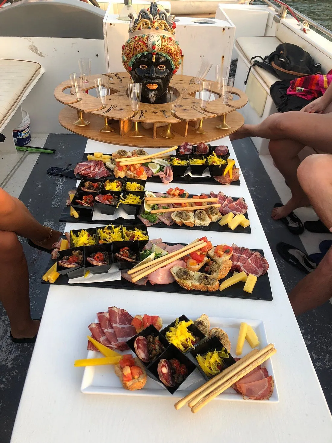 Con il tour al tramonto potrete visitare le grotte marine dell'isola e gustare specialità siciliane cucinate al momento e servite direttamente a bordo. È anche inclusa una sosta snorkeling al calar del sole, per regalaravi foto speciali e un momento indimenticabile.