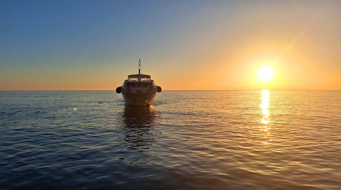 Una fuga serale in barca per godersi la vista più bella e romantica del tramonto dal mare - con musica, cocktails e un autentico aperitivo.