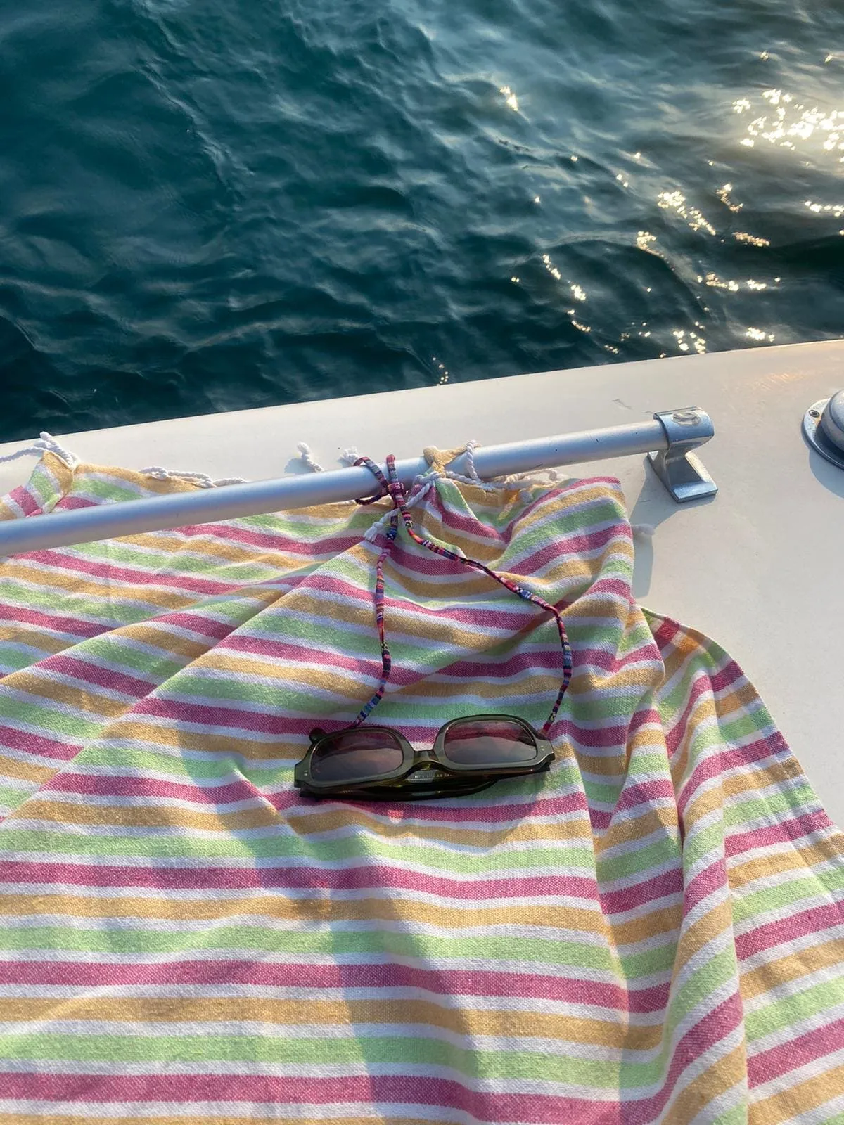 Durante la navigazione potrete rilassarvi sul divanetto di poppa gustando un bicchiere di vino o una bibita fresca offerti dal Capitano.