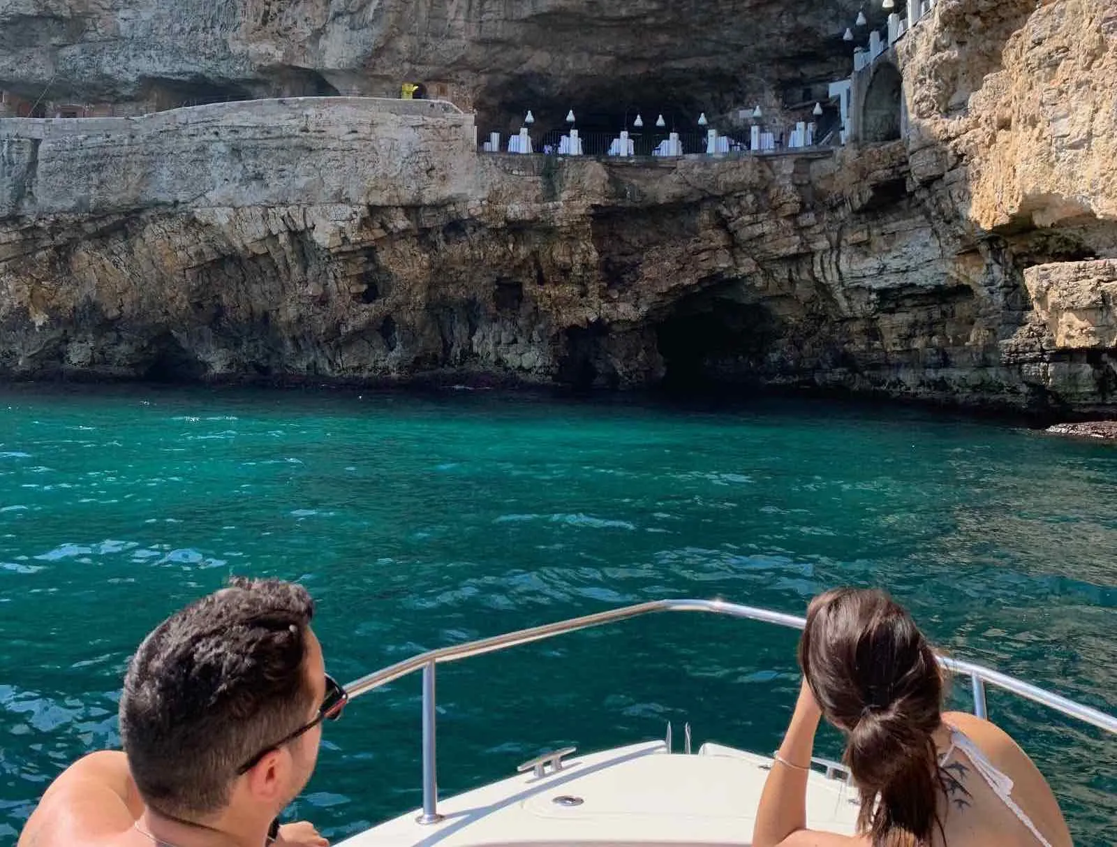 Visiterete le principali calette e grotte del luogo, come Grotta delle Rondinelle, Grotta Azzurra, Grotta delle monache e molte altre. È anche inclusa una breve sosta per nuotare nelle acque di Polignano.