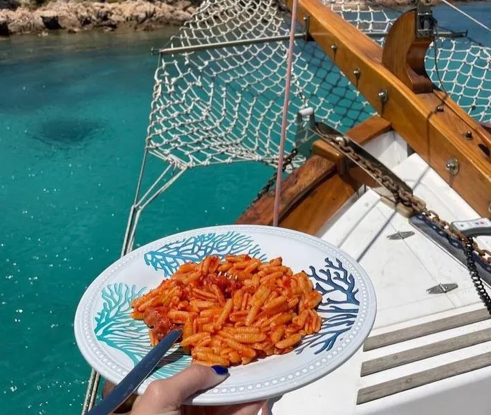 Gli itinerari delle gite in barca possono essere predefiniti o personalizzati, a seconda dell'opzione scelta, e includono un pranzo a bordo a base di prodotti tipici sardi, come formaggi e pane carasau.