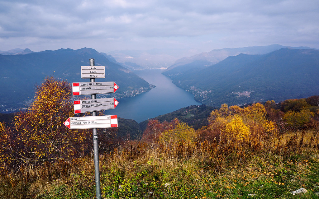 Dopo pochi minuti, incontrerai un nuovo bivio per la salita al Bolettone, ignoralo e prosegui seguendo le indicazioni per la Bocchetta di Lemna e il Sentiero dei Faggi. Arrivato alla Bocchetta di Lemna (1.115 m), continua a seguire le indicazioni per la cima del Monte Bolettone, che si raggiungerà in meno di 30 minuti (circa 3 ore dal parcheggio).