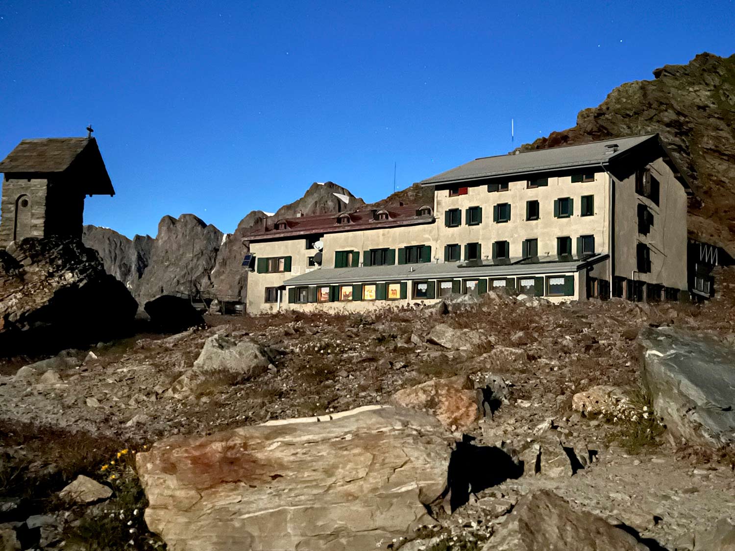 Destinazione rifugio Marinelli, sull’altro ramo finale della Valmalenco. Dalla diga di Campo Moro si segue il sentiero #2 del CAI. Prima parte nel bosco fino all’alpe Musella, da qui la salita di sette dossi definiti i 7 sospiri ci porta fino al rifugio Carate, solo ad un terzo del cammino. Alla bocchetta delle Forbici giungiamo a due terzi della salita. Dopo un lungo pezzo in piano si riprende a salire per l’ultimo sperone roccioso dove è posto il rifugio Marinelli. Si scende seguendo l’itinerario di salita.