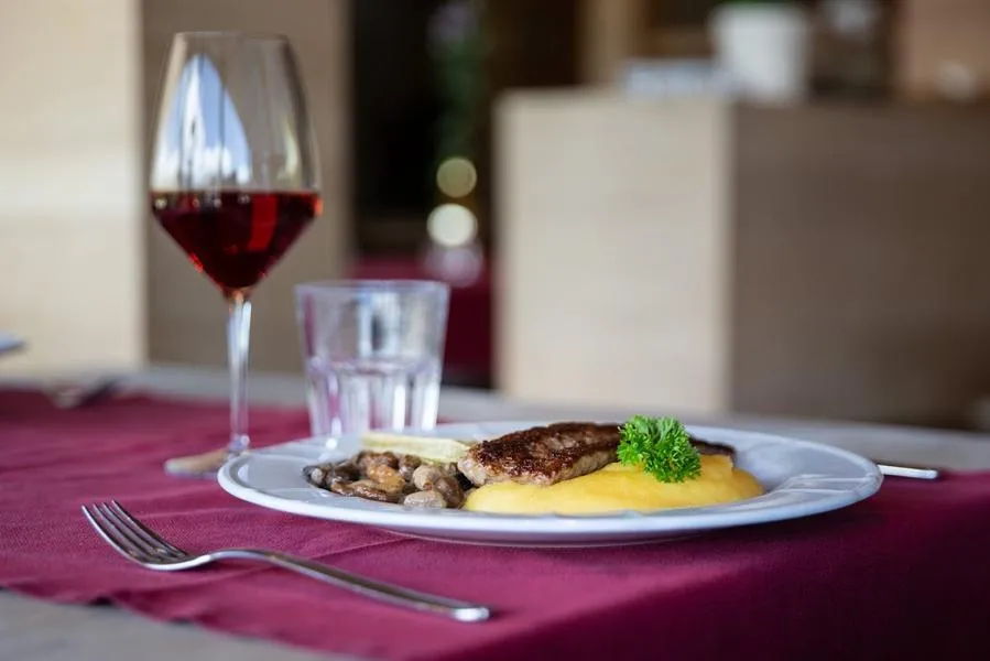 Motoslitte e Cene in baita con motoslitta vicino a Val di Fassa