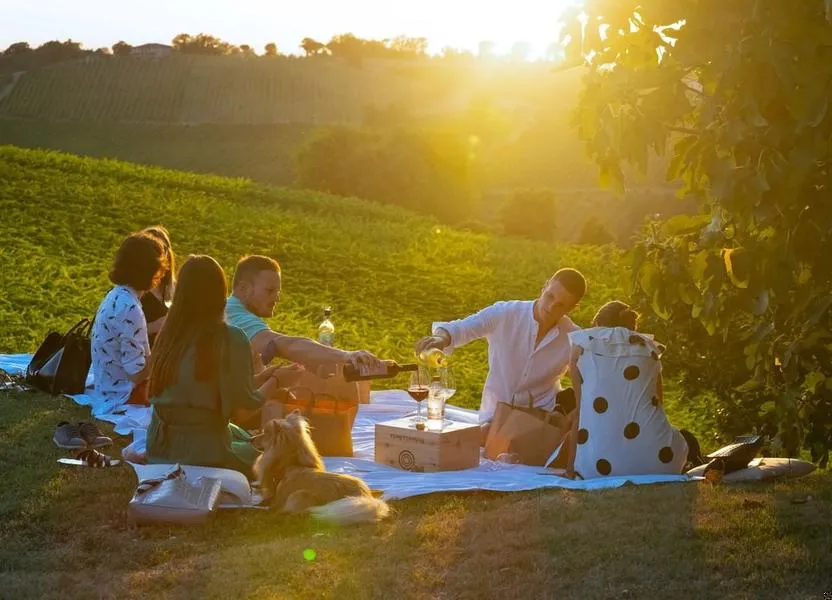 Il picnic è un’esperienza adatta ad un’uscita in compagnia, con famiglia o in coppia. Solitamente viene fornito un cestino con prodotti locali e delle bevande (vino o altro) ed i clienti si recano in autonomia nelle postazioni in vigna o nei campi confinanti con la struttura.