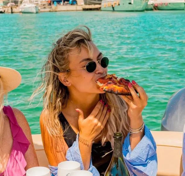 La particolarità di quest'imbarcazione è che presenta, a bordo, una cucina in cui saranno preparati piatti freschi e a base di prodotti locali. Infatti, vi verranno serviti un aperitivo e un pranzo a più portate compreso di vino e acqua.